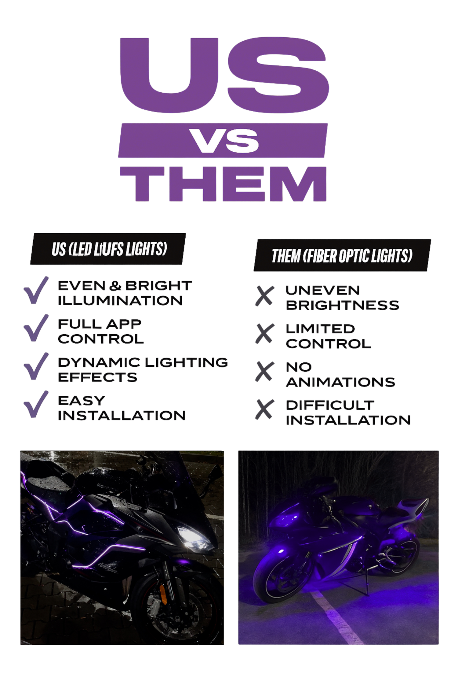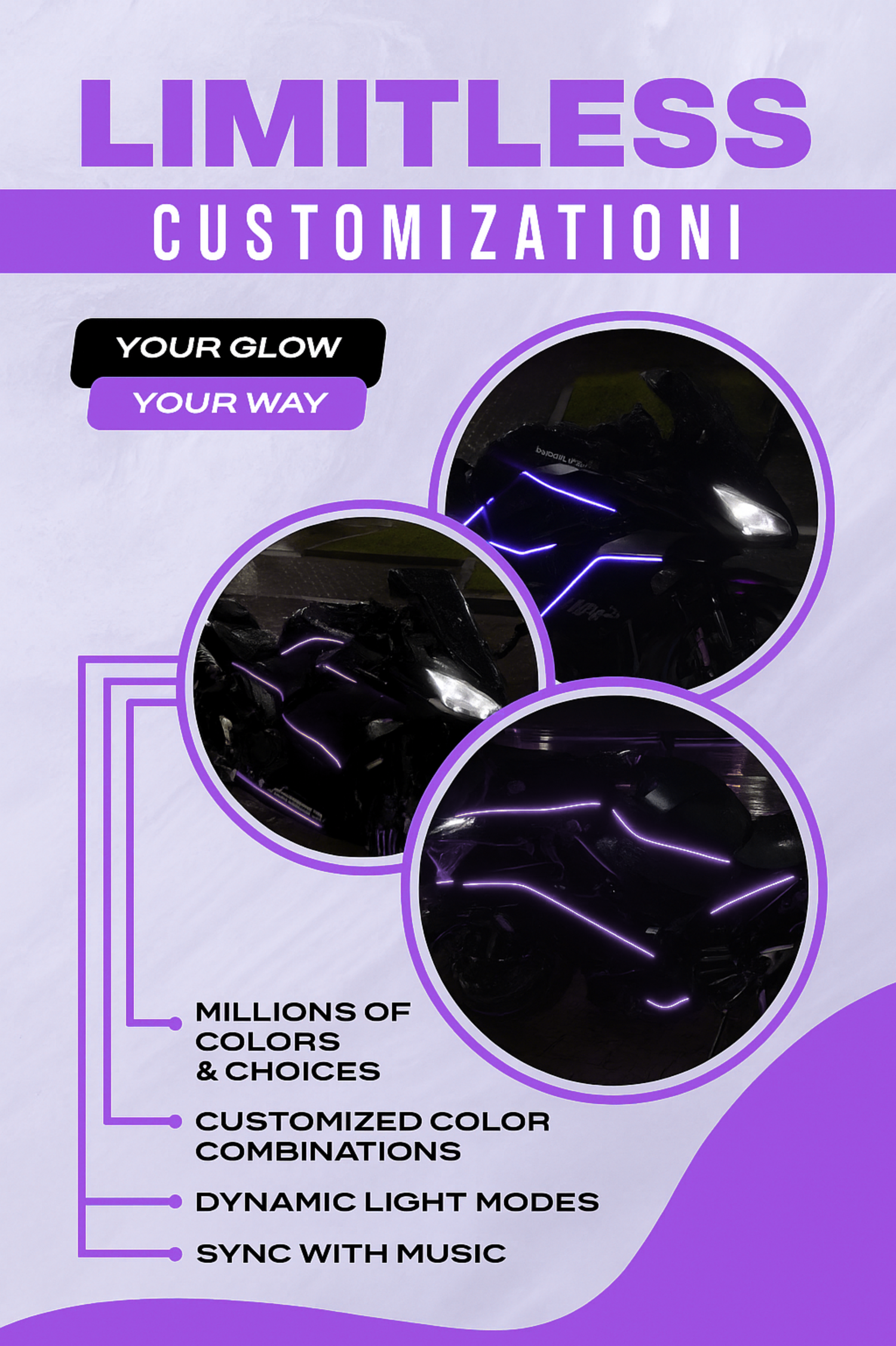 Each color can display 256 shades, resulting in over 16 million combinations— giving your motorcycle a unique glow that matches your style.